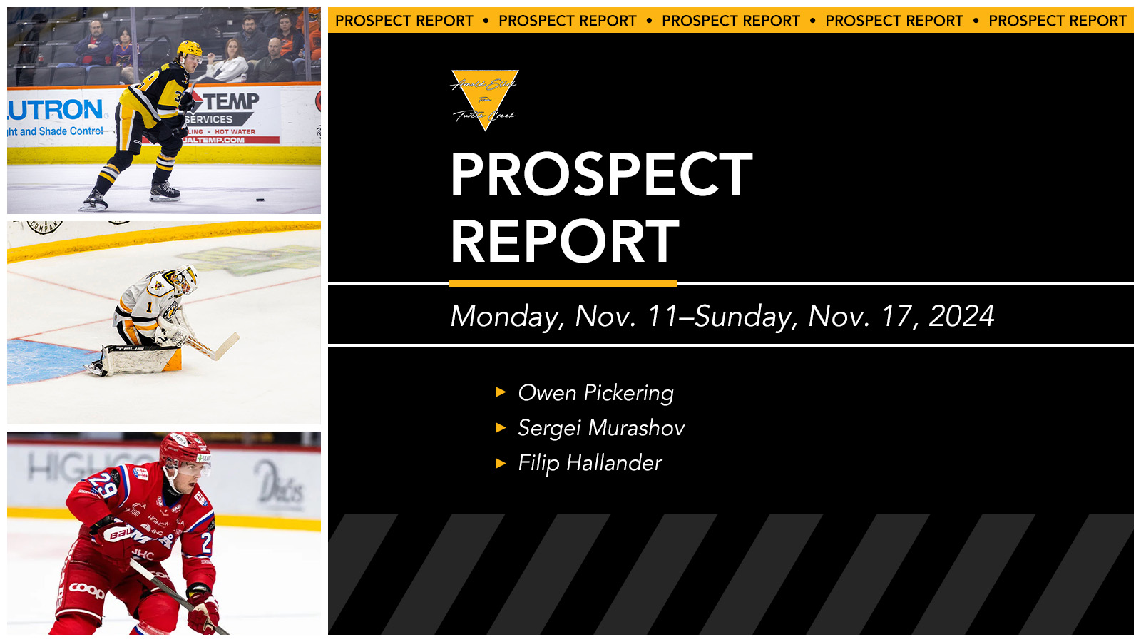 Owen Pickering scored for the first time in the AHL, giving the Wilkes-Barre/Scranton Penguins a 3-2 lead in a 4-3 overtime loss to Lehigh Valley on Wednesday. The 2022 first round pick shook off a backchecker and muscled the puck past the Phantoms goaltender. Three days later, Pickering debuted with the Pittsburgh Penguins at the NHL, recording a secondary assist in a 4-3 shootout win over the San Jose Sharks. After leading blueliners on the Swift Current Broncos last season with 46 points in 59 games, Pickering, likely returning to Wilkes-Barre/Scranton when Kris Letang returns to the Pittsburgh lineup, hopes to start finding the scoresheet with some consistency now a handful of games into a promising professional career.